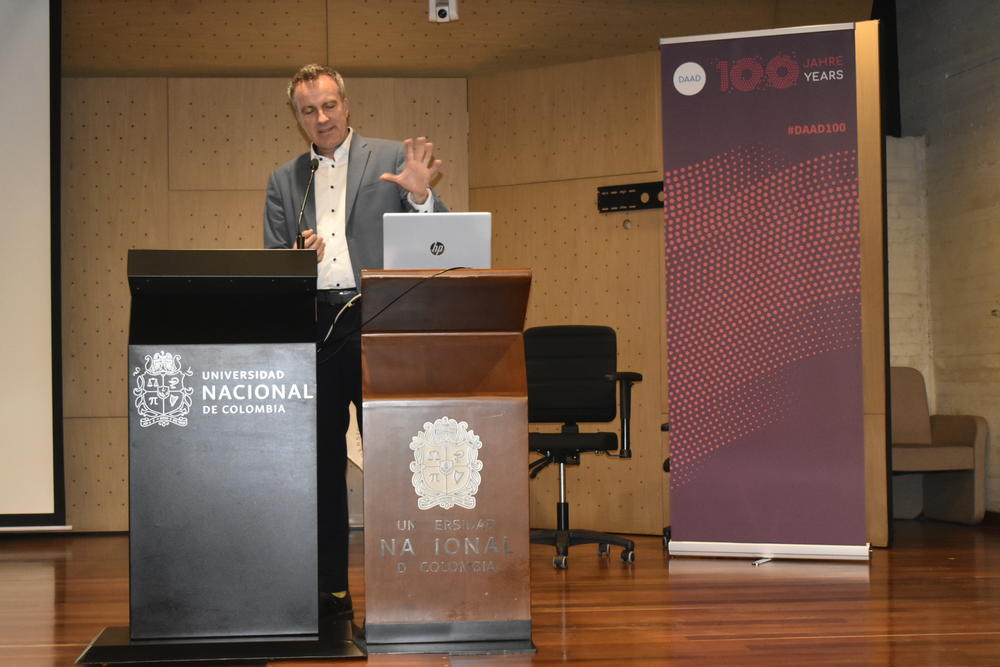 La inauguración contó con palabras de Carmenza Castiblanco (IDEA–UNAL) y Eva Youkhana (ZEF), junto a intervenciones de Rosario Rojas Robles (IDEA–UNAL) y autoridades alemanas, entre ellas Simon Herchen, Ministro Consejero y Jefe Adjunto de Misión de la Embajada de Alemania en Colombia, y Reinhard Babel, Director de la Oficina Regional del DAAD en Bogotá.